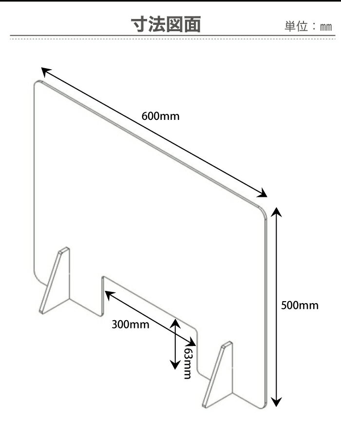 会議室やデスクの仕切り受付カウンターなど飛沫感染防止コロナウイルス対策に如何でしょう 素材 アクリル サイズ 製品サイズW600mm×H500mm厚み3mm 窓枠サイズ(W300mm×H63mm) 脚サイズ(W147mm×H97mm) 取り扱い注意 ◆高温で変形する可能性があります。