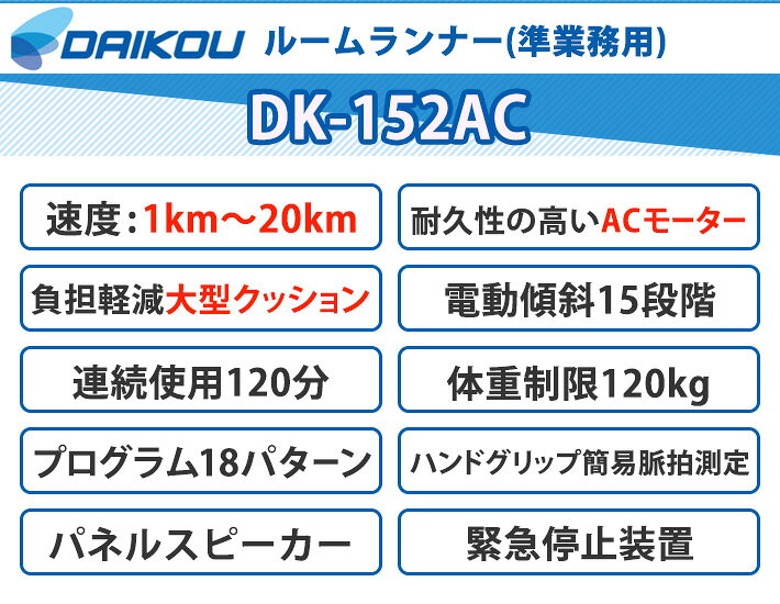 準業務用 ルームランナー DAIKOU ダイコウ DK-152ac ランニングマシン ランニングマシーン エアークッション 折りたたみ 高性能トレッドミル 坂道 自宅 トレーニング ホームジム 自宅 宅トレ