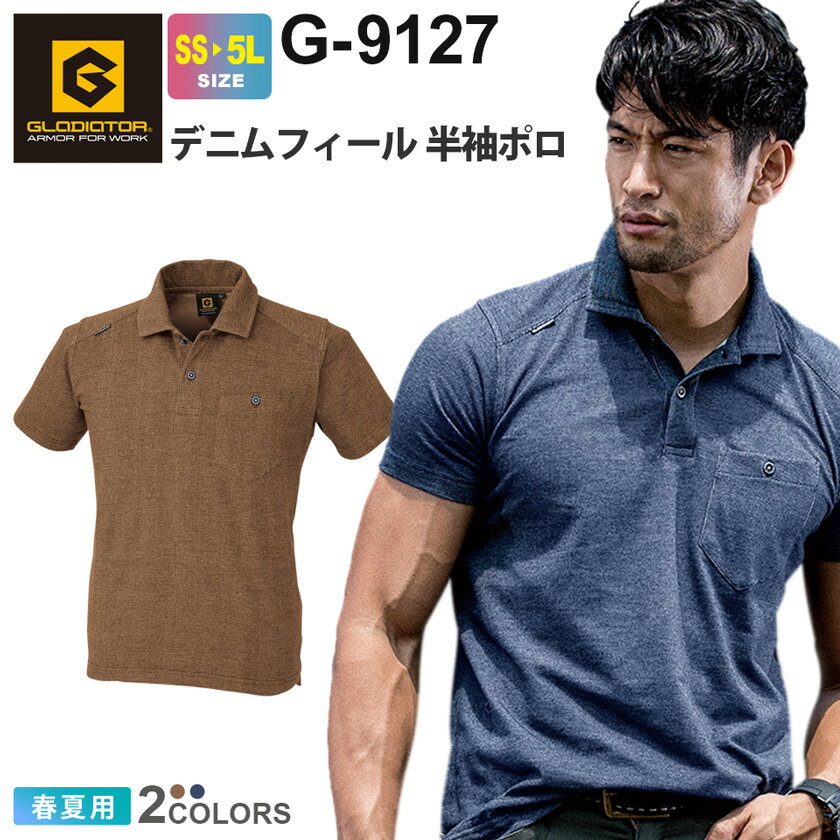【P10倍】 GLADIATOR デニムフィール 半袖ポロ G-9127 コーコス 【春夏】 作業服 CO-COS グラディエーター トップス ワークポロ ワークウエア ポロシャツ 衿形状記憶 デニム風 作業着 消臭 メンズ&レディース 女性サイズあり G-9127シリーズ