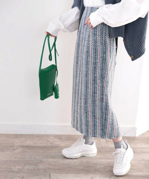 1枚でコーデ映え、ミックスツイードロングスカート着るだけでこなれたお洒落な雰囲気。