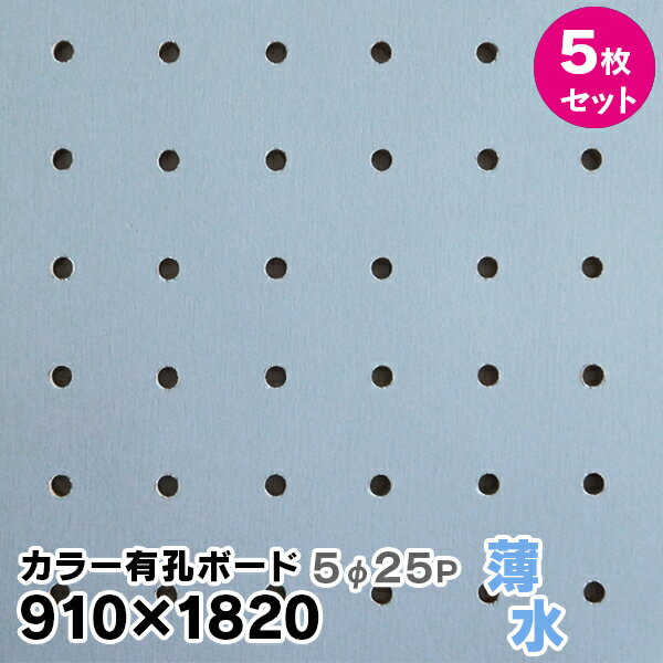 条件付き送料無料★5枚セット【有孔ボード】UKB-R4P2-LB525-5S カラー 薄水 5φ25ピッチ パンチングボード ペグボード 穴あきボード 厚さ4mm ラワン合板 910×1820