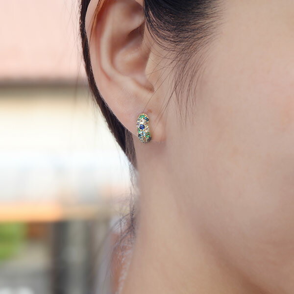 《スペック》 ■本体素材K18シャンパンゴールド(サンプル=本体)ブルーサファイア(約)2.0mm 4石ロンドンブルートパーズ(約)2.0mm 4石グリーンサファイア(約)2.0mm 4石ブルートパーズ(約)2.0mm 6石エメラルド(約)2.0mm 6石タンザナイト(約)2.0mm 4石ラブラドライト(約)2.0mm 4石■サイズ高(約)11.3mm幅(約)5.0mm厚(約):3.0mm重(約):1.85g(キャッチ無し)ポスト(約):0.7×10mm(シリコンダブルロックキャッチ付)※表記はすべて石枠込みとなっております。