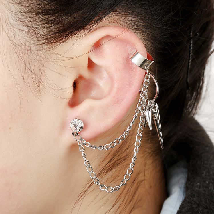 シュリンガーイヤーカフピアス 1個販売 イヤカフとピアスをチェーンでつなげたイヤクリップ メンズ レディース ペア イヤリング キャッチピアス スタッドピアス 20G 20ゲージ 軟骨 耳 結婚式 発表会 卒業式 入学式 イヤーフック スパイク 揺れる リング パンク コーン